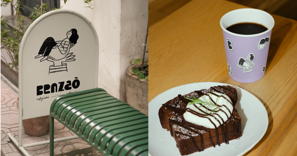 L’identité repose sur la figure du cafezinho, ce petit café noir fort et sucré, véritable rituel social au Brésil. Le concept visuel s’inspire de cette convivialité, mais dans un langage graphique illustré, moderne et chaleureux. L’univers s’appuie sur un personnage illustré, à la posture détendue, symbole de ce moment de pause bienveillant.
